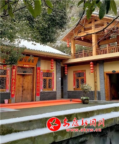紅屋檐、紅格窗、紅木門、紅楹聯(lián)、紅地毯,還有那懸掛在屋頂上隨風(fēng)舞動(dòng)的紅燈籠,在瑟瑟寒風(fēng)和茫茫白雪中,才顯其妖嬈展姿。這里,是紅與白色澤、熱與冷色溫的匯聚。紅,是一枝梅,是數(shù)盞燈,是萬(wàn)家火,是山里人熱騰騰好日子的主色調(diào)……