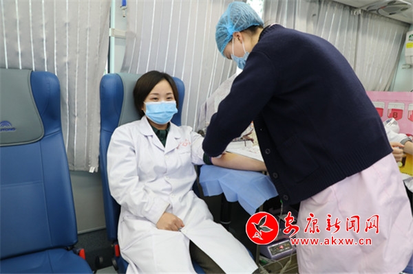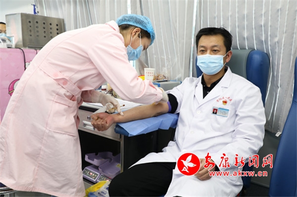 院長張海波,副院長吳小艷帶頭獻血。