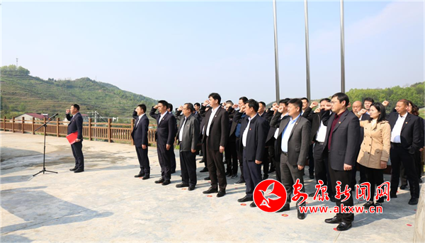 在魚姐村紅色文化旅游廣場(chǎng),全體人員聆聽了“恒口暴動(dòng)始末”“一軍月夜借糧”、恒口籍烈士章健等紅色歷史故事。 示范區(qū)(試驗(yàn)區(qū))黨工委副書記、管委會(huì)主任吳大林代表黨工委、管委會(huì)向革命烈士敬獻(xiàn)花籃,緬懷革命英烈的豐功偉績(jī)。全體人員向烈士默哀鞠躬,深切表達(dá)對(duì)革命先烈的哀思與敬意,隨后,現(xiàn)場(chǎng)全體黨員一起高舉右拳重溫入黨誓詞,宣誓聲莊嚴(yán)而堅(jiān)定,回蕩在魚姐村山間。