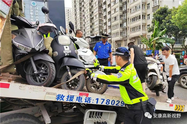 針對(duì)車輛亂停亂放等交通秩序管理問(wèn)題,執(zhí)法人員對(duì)花園大道、秦嶺大道、學(xué)府路、高新四路等主次干道沿線開展全天候整治,并向沿街商戶下發(fā)摩托車、電動(dòng)車規(guī)范停車告知書。對(duì)占用人行道、消防通道、公交泊位等行為進(jìn)行拍照取證后強(qiáng)制拖移。同時(shí),向市民群眾發(fā)放文明交通宣傳彩頁(yè),引導(dǎo)大家自覺(jué)摒棄交通陋習(xí)、遵守交通法律法規(guī),安全文明出行。