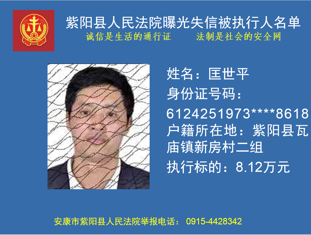 曝光失信 | 紫陽縣人民法院:關于敦促匡世平履行法定義務的公告