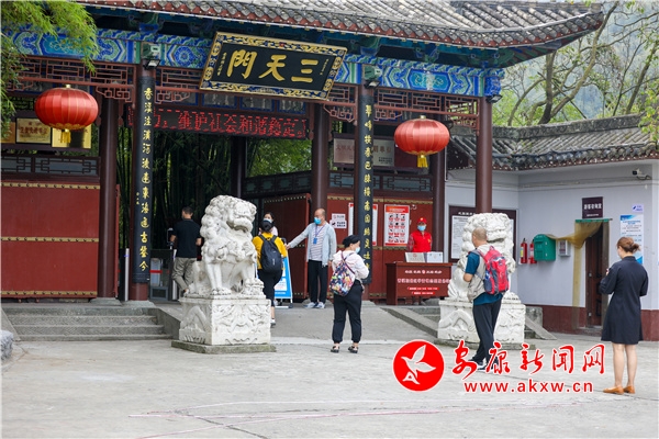 本網(wǎng)訊(記者 羅超)9月11日,在安康市香溪洞景區(qū)“三天門”外,不少市民、游客正在大門附近有序排隊,在不遠處,文明旅游相關標語設置在醒目位置,不少人依次通過閘機進入景區(qū)。