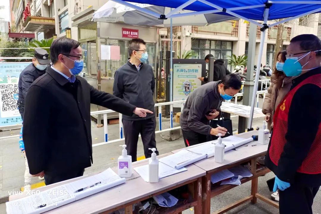 11月29日,氣溫驟降,寒風(fēng)襲人,下沉社區(qū)一線開展疫情防控工作的干部職工備受常委會領(lǐng)導(dǎo)的牽掛。一大早,市人大常委會黨組副書記、副主任鄭小東一行深入新鋪社區(qū)看望正在社區(qū)一線值守的干部職工,檢查指導(dǎo)社區(qū)疫情防控應(yīng)急工作,秘書長左自文一同檢查。