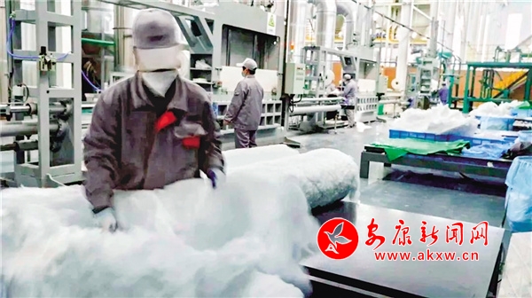 在恒口示范區(qū)工業(yè)產業(yè)園區(qū)的恒康欣石玻璃纖維有限公司1號生產線廠房,我們就見證了玻璃纖維“化石為寶”的過程。轟鳴的機器噴出一層層白色的軟棉花,讓人感覺這是一家紡織企業(yè),其實這是一家高科技材料公司,專干“化石為寶”“點石成金”的活。