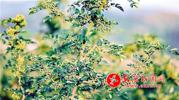 初夏的陽光下,農(nóng)民在花椒樹之間中除草,忙得不亦樂乎。看著綠得發(fā)亮的果實密密麻麻掛滿枝頭,大家都喜上眉梢。