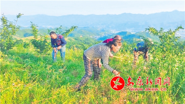 “今年雨水多,草長得旺,花椒長得更快,果子比去年結(jié)得多了,這樣的話,我今年就能掙得比去年還多,說實話,在這里干活讓我們的日子也有奔頭?!币褜崿F(xiàn)脫貧的65歲的肖光秀笑得合不攏嘴。