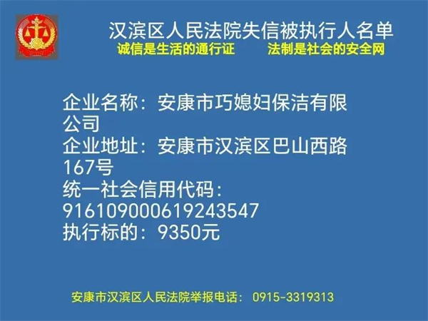 2月1日安康市漢濱區(qū)人民法院曝光新一批失信被執(zhí)行人名單快看都有誰(shuí)轉(zhuǎn)發(fā)提醒更多人↓↓↓?