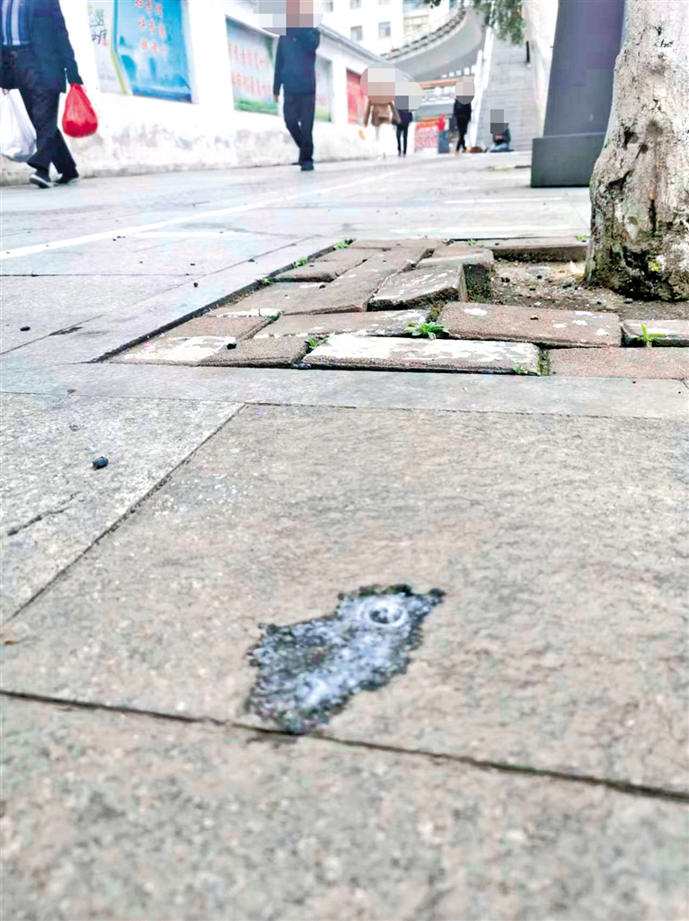 3月26日,有市民在安康中心城區(qū)馬坎天橋附近隨地吐痰。記者 潘潤(rùn)生 攝