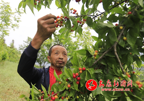 △村民邱宗存種植櫻桃2畝,每年可為他帶來五六千元的收入。