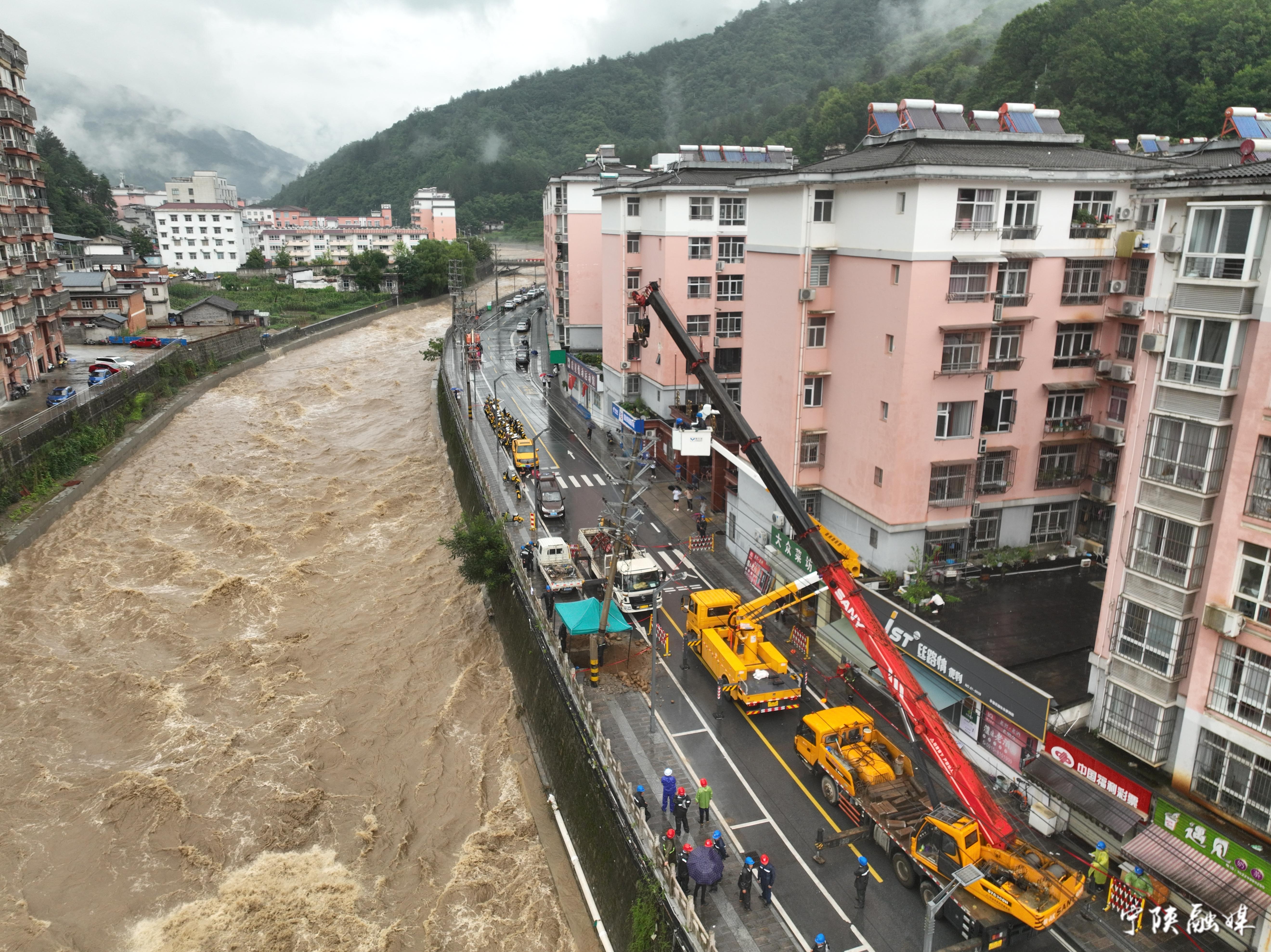 面對(duì)汛情,寧陜電力公司共出動(dòng)巡視搶修車輛97臺(tái)次、檢修人員212人次、分6個(gè)現(xiàn)場(chǎng)工作組全力搶修,已實(shí)現(xiàn)各鎮(zhèn)供電恢復(fù)全覆蓋,合計(jì)恢復(fù)20790戶。