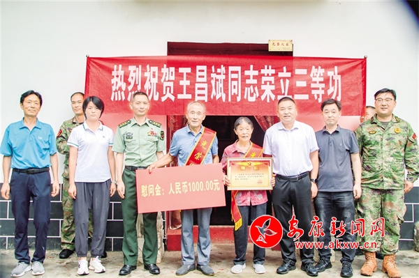 王昌斌在年度戰(zhàn)備訓(xùn)練中,因表現(xiàn)突出,榮立個人三等功。據(jù)了解這是他第六次榮立個人三等功,送喜報現(xiàn)場軍地領(lǐng)導(dǎo)當(dāng)場宣讀立功喜報,并為其父母披綬帶、戴紅花,向他們表達崇高的敬意和衷心的祝福。年邁的父母無比激動地接過了滿載榮譽的喜報,擺放在客廳最顯眼的位置,臉上洋溢著喜悅和自豪。隨后與王昌斌父母圍坐在一起,詳細了解他們的身體狀況和生活情況,同時也感謝他們?yōu)樽鎳?、為部隊培養(yǎng)了優(yōu)秀人才,為家鄉(xiāng)贏得榮譽,為祖國的國防事業(yè)貢獻突出力量。并囑咐鎮(zhèn)村干部和相關(guān)部門,要給予現(xiàn)役軍人家庭更多的關(guān)懷和照顧,及時幫助他們解決遇到的困難和問題,認真做好擁軍優(yōu)屬的各項服務(wù)保障工作。