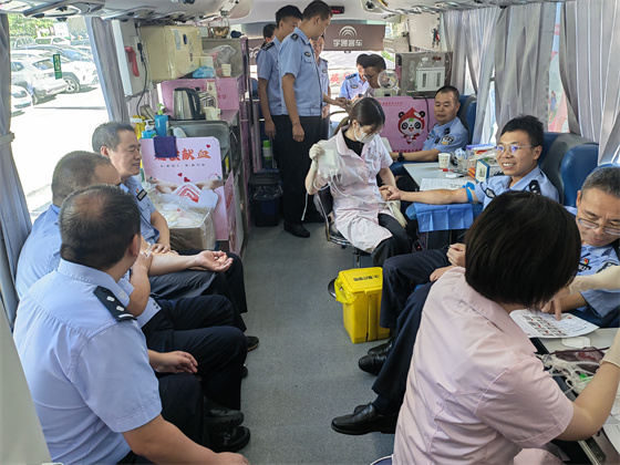 活動(dòng)現(xiàn)場(chǎng),參與獻(xiàn)血的公安干警們?cè)缭鐏?lái)到獻(xiàn)血點(diǎn),在醫(yī)護(hù)人員的指導(dǎo)下,認(rèn)真填寫(xiě)獻(xiàn)血登記表,依次接受健康征詢(xún)、血液初篩檢查、現(xiàn)場(chǎng)采血等流程。鮮紅的熱血順著導(dǎo)管緩緩流出,匯聚成了一份份愛(ài)心,每個(gè)人的臉上都洋溢著堅(jiān)定和自豪。