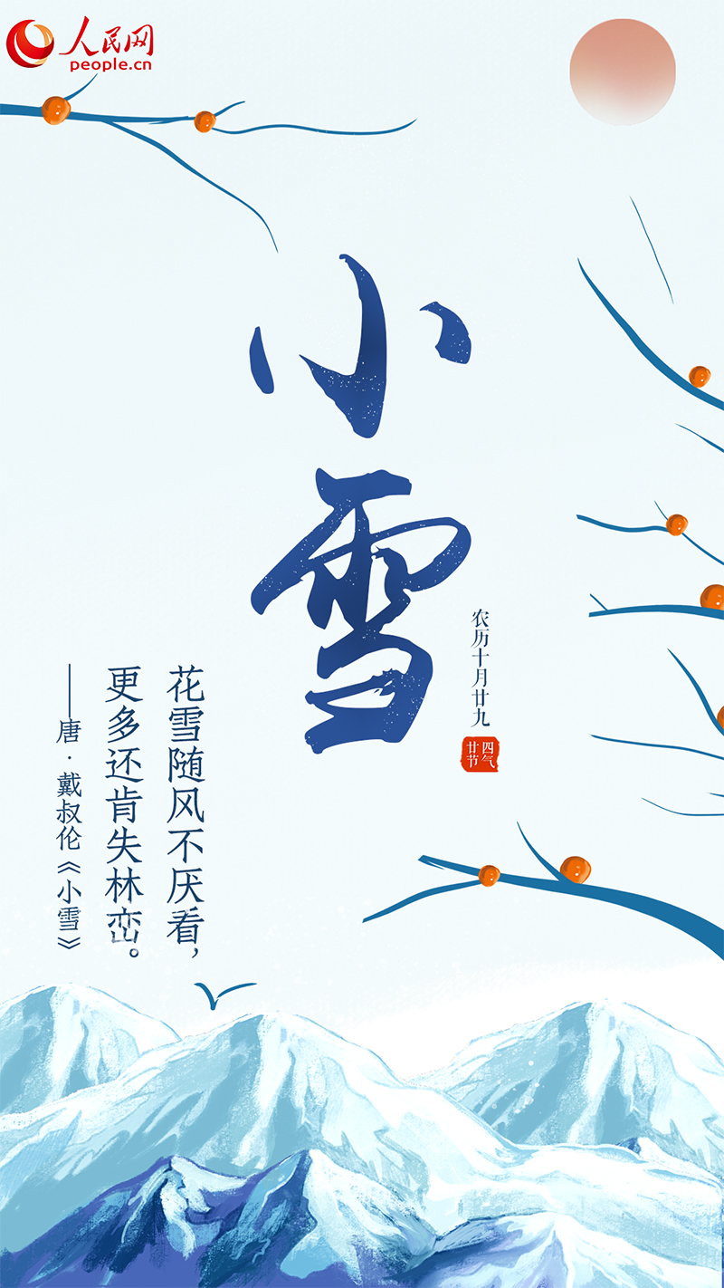 《月令七十二候集解》中記載,“小雪,十月中。雨下而為寒氣所薄,故凝而為雪。小者未盛之辭。”小雪時(shí)節(jié),全國(guó)大部分地區(qū)的氣溫持續(xù)下降,有些可降至零攝氏度以下?!疤斓胤e陰,溫則為雨,寒則為雪”,大風(fēng)降溫之余初雪可期,但也未到漫天飛雪的嚴(yán)冬。