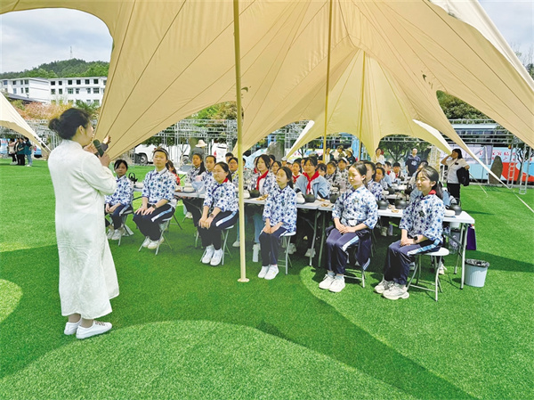 紫陽小學研學活動聆聽茶藝課程。劉姝含 攝