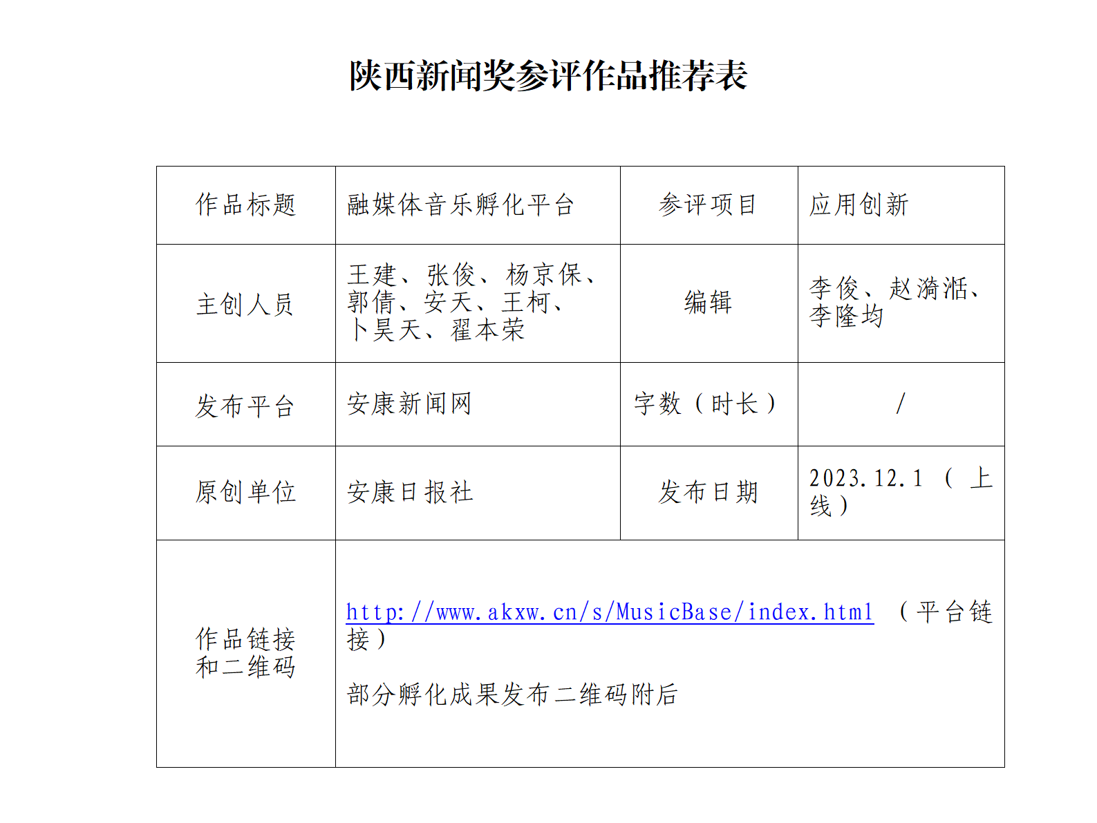 經(jīng)過社黨委研究決定,擬推薦以下2件新聞作品參評(píng)“2024年度陜西新聞獎(jiǎng)融合報(bào)道、應(yīng)用創(chuàng)新和新媒體新聞專欄”。公示時(shí)間從2025年1月6日至2025年1月10日,公示期5個(gè)工作日。如有不同意見,請(qǐng)向安康日?qǐng)?bào)社機(jī)關(guān)紀(jì)委、新聞管理部反映。