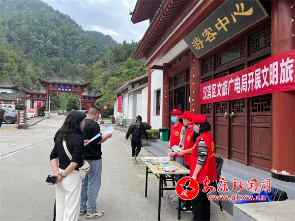 為增強(qiáng)游客的文明旅游意識(shí),近日,漢濱區(qū)文旅廣電局組織志愿者們?cè)陔p龍景區(qū)現(xiàn)場向市民游客發(fā)放文明旅游宣傳折頁,宣傳講解文明旅游相關(guān)知識(shí)以及應(yīng)當(dāng)遵循的行為規(guī)范,引導(dǎo)游客有序排隊(duì)游玩。宣傳彩頁內(nèi)容既包含了安康的歷史文化、自然風(fēng)光介紹,也強(qiáng)調(diào)了保護(hù)環(huán)境等文明旅游具體要求,旨在引導(dǎo)每一位游客成為文明旅游的踐行者和傳播者,從自身做起、從小事做起,共展文明風(fēng)采,共樹文明形象,共享文明旅游好風(fēng)景。(漢濱區(qū)委宣傳部供圖)?