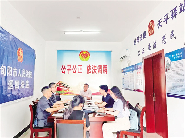近年來,旬陽法院立足山區(qū)基層法院實(shí)際,在抓好人民法庭工作的基礎(chǔ)上,在法庭下轄鎮(zhèn)的村、社區(qū)設(shè)立“天平驛站”,安排法官定期輪值,及時(shí)響應(yīng)群眾訴求,實(shí)現(xiàn)矛盾糾紛一站式接收、一攬子調(diào)處、全鏈條閉環(huán)解決, 推動(dòng)審判觸角向百姓“家門口”延伸。