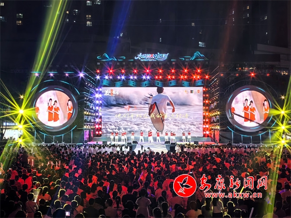 夜幕降臨,開幕式現(xiàn)場美輪美奐、氣勢恢宏。燈光秀、歌舞秀拉開活動帷幕,博得雷鳴般的掌聲。21個鎮(zhèn)代表隊登臺亮相?!盁熁ㄐ恪辫矈Z目,化作多彩光芒,點亮太極城的夜空。伴隨著現(xiàn)場觀眾的激情吶喊,文藝節(jié)目相繼上演,歌伴舞《沖呀!去旬陽》、旬陽好物旬陽非遺推介、舞蹈《舞動長樂紅》、民歌聯(lián)唱《姐不約郎郎不來》、千人復(fù)誦《太極·旬陽賦》、太極秀《太極江湖》、千人齊跳《太極舞》等節(jié)目,充分展示了旬陽的文化底蘊、旅游資源、人文風(fēng)情,掌聲如潮、歡聲如雷。中國內(nèi)地歌手屠洪剛演唱的歌曲《你》《江山無限》《精忠報國》瞬間將現(xiàn)場氣氛燃爆。