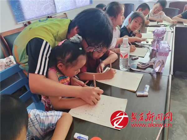 活動現(xiàn)場童聲飛揚(yáng),自信綻放。在歌唱課堂上,孩子們從最初的羞怯跟唱到自信放聲,一首清亮的童音版《紅山果》縈繞回蕩;剪紙藝術(shù)課上,孩子們?nèi)褙炞⒌貏?chuàng)作,一幅幅充滿童趣的作品躍然紙上;書法課堂中,志愿者系統(tǒng)教授硬筆書法技巧,孩子們在一筆一畫間體會漢字之美,專注力與書寫能力同步提升。