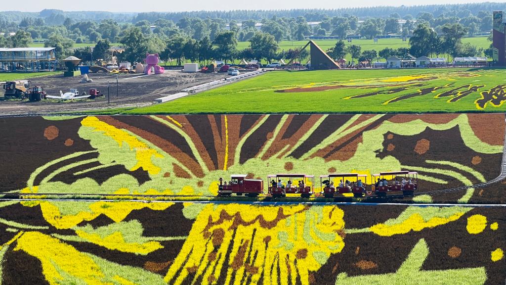 在北大荒集團閆家崗農(nóng)場的“藝術稻田”里,6幅稻田畫在165畝稻田中徐徐展開——冰雪畫卷盡顯百年冰城魅力,四季生態(tài)畫卷演繹著四季浪漫;萌寵卡皮巴拉,傳遞出平靜與治愈的力量;后羿射日、女媧補天、神筆馬良這些經(jīng)典神話在稻田中煥發(fā)新生,與多彩的稻浪共同演繹著中華文明的永恒魅力。100多公里外,北大荒集團四方山農(nóng)場的玉米田,青紗帳漸染金黃,工作人員張昊正遙控無人機,巡航監(jiān)測作物成熟度,科技與傳統(tǒng)在此刻共舞。