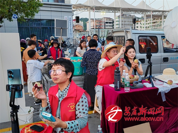 △ 漢陰縣蒲溪鎮(zhèn)第一書記組團(tuán)在縣村超比賽場地外直播賣桃子,累計(jì)幫銷紅桃2.8萬余斤。