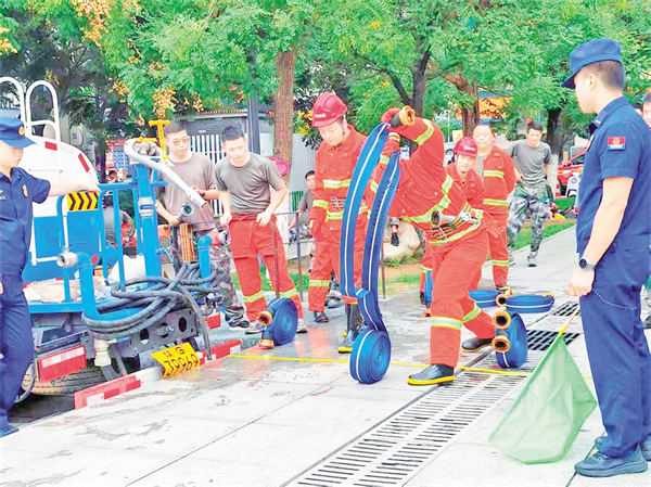 邱凱介紹,該鎮(zhèn)應(yīng)急救援隊由鎮(zhèn)級救援隊、15個村級救援分隊和水上應(yīng)急救援隊組成,共17支隊伍278人?!盀榱诉@次比武,后柳鎮(zhèn)收到通知后就積極籌備。兩個月里,參賽隊員除了到縣消防救援大隊接受專業(yè)培訓(xùn)外,平時也堅持每周訓(xùn)練?!鼻駝P指著場邊的灑水車說,“這輛灑水車是鎮(zhèn)上自己改造的,不僅成本低,也更適合鎮(zhèn)情實際,五層樓以上的救援也能覆蓋。?