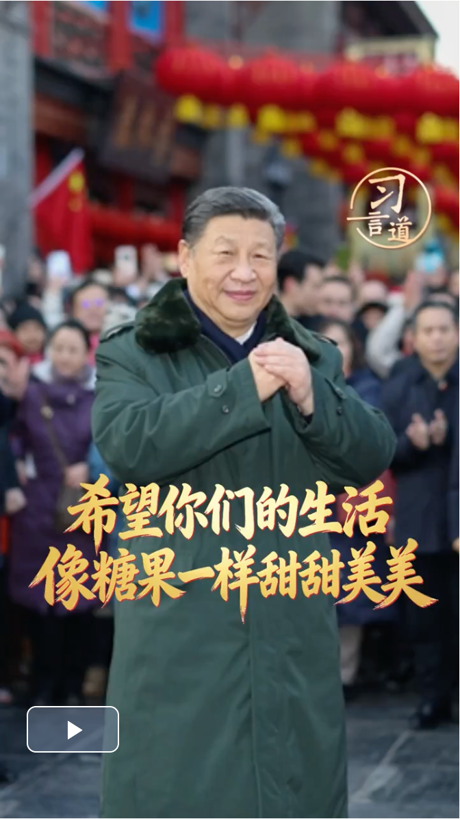 每逢春節(jié)前夕,總書記都會(huì)走到基層、百姓中間。在天津古文化街,總書記掏錢買麻花作為見面禮,送給身旁的小朋友,說(shuō)“送你一份麻花”;在遼寧,總書記接下孩子們遞來(lái)的糖果,親切地說(shuō),你們的糖我收下,吃了你們的糖心里很甜。一個(gè)個(gè)親切有愛的感人畫面,充滿了溫情,傳遞著感動(dòng)。