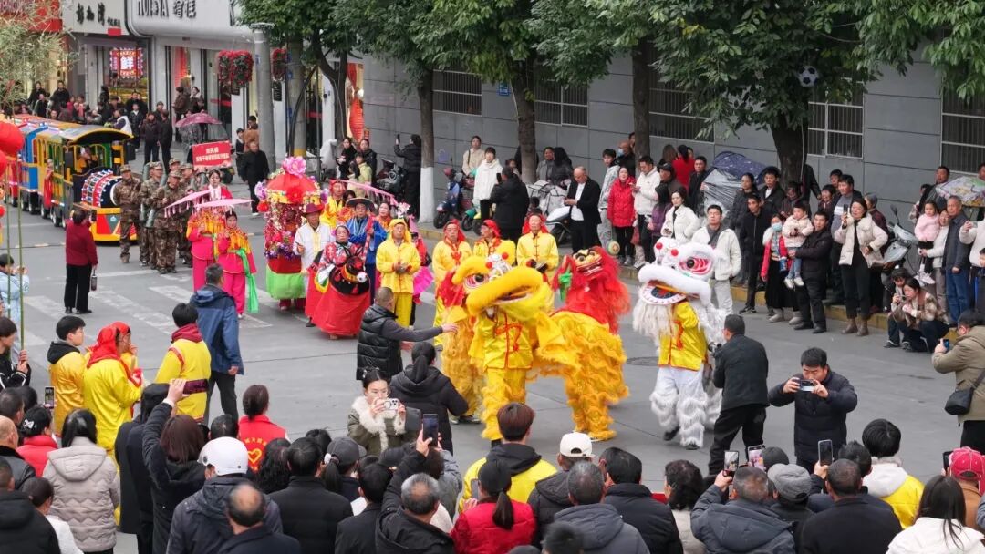 觀眾熊苗苗:很遠(yuǎn)就被鑼鼓喧天的場(chǎng)景給吸引了,看到有很多隊(duì)伍在演出,有年紀(jì)大的叔叔阿姨,也有很小的弟弟妹妹。這個(gè)場(chǎng)景真的非常熱鬧,讓人看著很開心,年味十足。