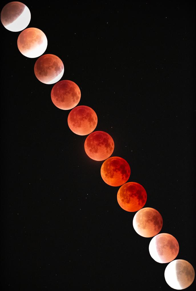 如何觀測和拍攝這輪“紅月亮”?蔣晨明告訴記者,與日食不同,月食可以直接用肉眼觀測,無需佩戴任何防護設(shè)備;如果有望遠鏡,可以看清月亮表面陰影、環(huán)形山、“紅月亮”層次,效果壯觀震撼;喜歡攝影的朋友可以使用專業(yè)相機或手機針對各階段的月亮形態(tài)分別拍攝,做延時拍攝還可以還原月食的全過程。
