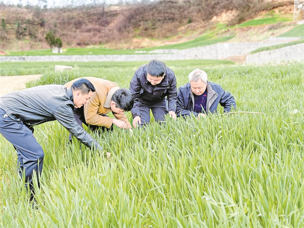 “這塊墑情不錯(cuò),但那邊靠坡的地有點(diǎn)干,施肥得區(qū)別對(duì)待。”2月24日,漢濱區(qū)農(nóng)業(yè)農(nóng)村局聯(lián)合相關(guān)部門組建技術(shù)服務(wù)隊(duì),分赴各糧食生產(chǎn)重點(diǎn)鎮(zhèn)。汪德義帶著隊(duì)員們逐塊田排查,建立管理臺(tái)賬,針對(duì)不同苗情、墑情精準(zhǔn)開具“個(gè)性化處方”。農(nóng)戶圍在他身邊,聽得認(rèn)真,問(wèn)得仔細(xì)。