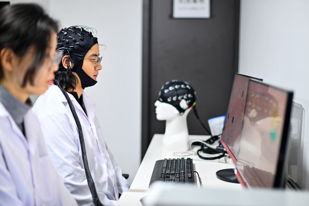 2026年2月27日,在位于天津濱海高新區(qū)的中電云腦(天津)科技有限公司,工作人員進行腦機接口技術(shù)測試。新華社記者 趙子碩 攝