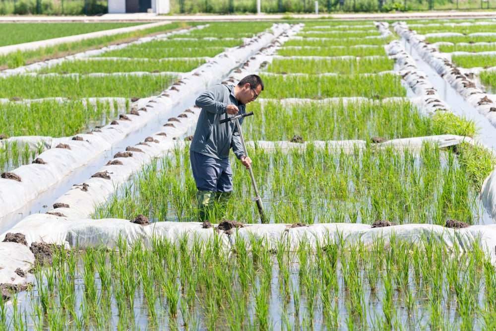 2025年6月18日,在位于黑龍江省雙鴨山市寶清縣的中國水稻研究所北方水稻研究中心的試驗田內(nèi),科研人員取耕層土樣。新華社記者 謝劍飛 攝