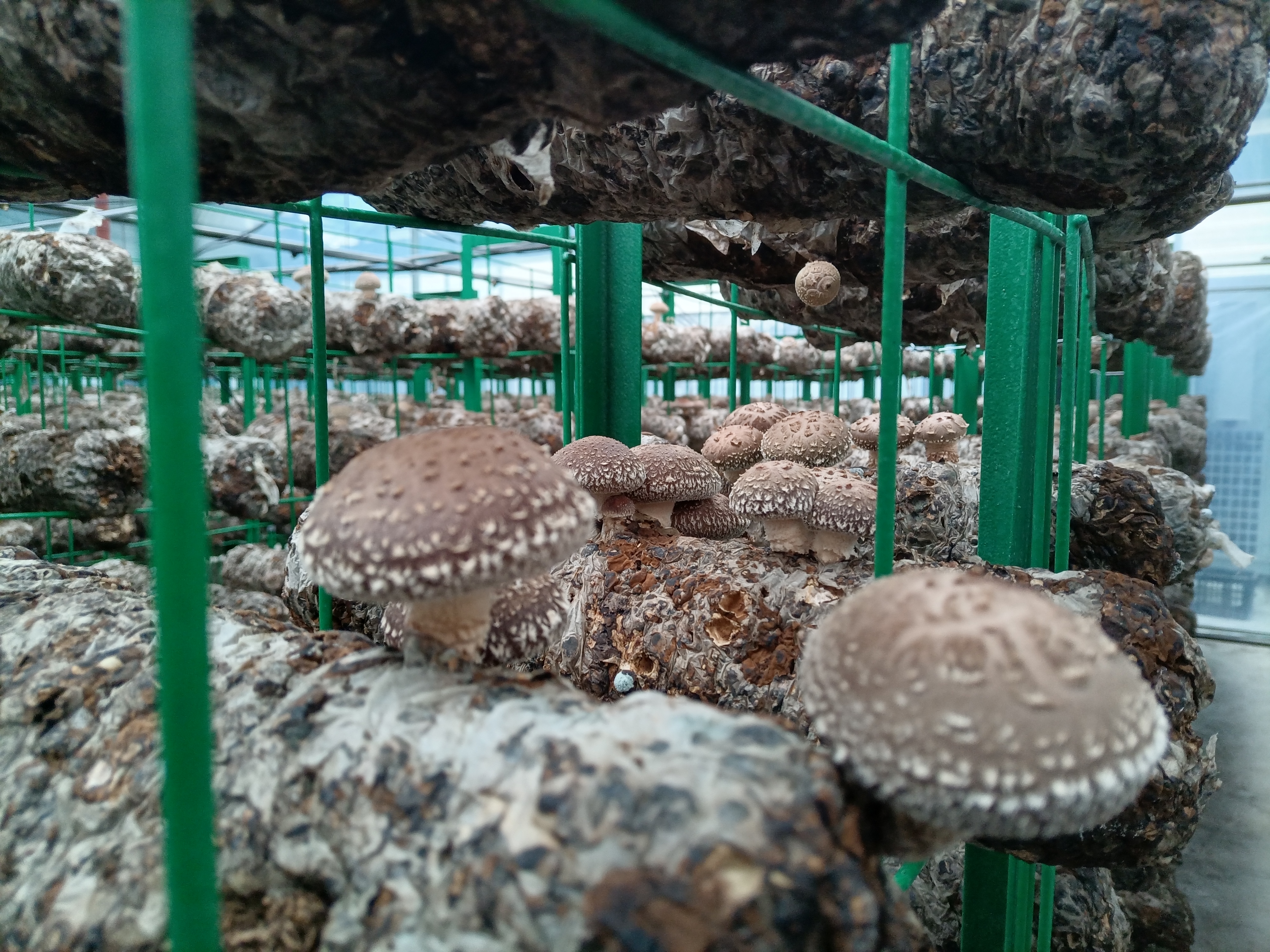 △ 喜河鎮(zhèn)晨光村食用菌標(biāo)準(zhǔn)廠(chǎng)房?jī)?nèi)香菇長(zhǎng)勢(shì)喜人