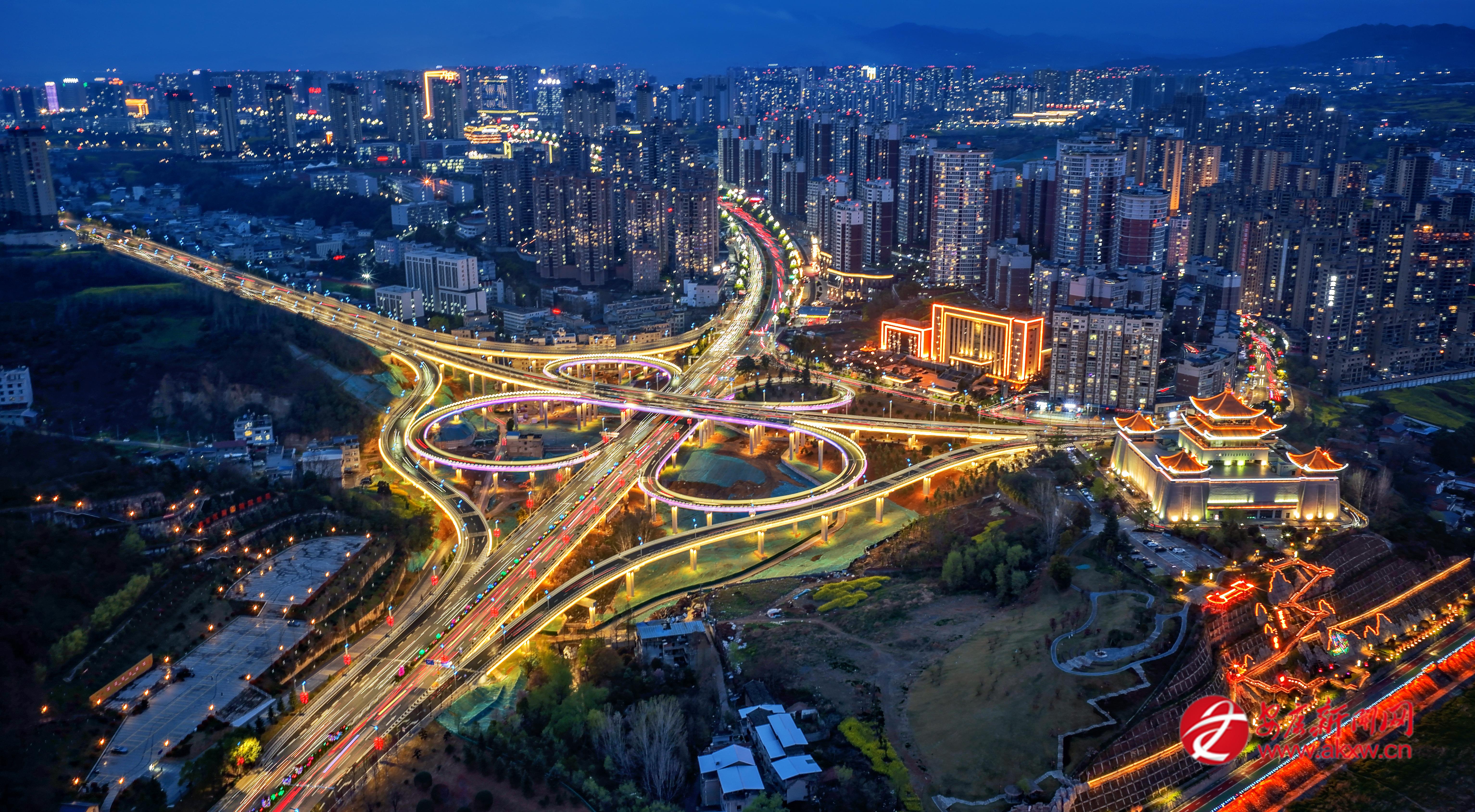 3月15日,七里溝立交如金色紐帶裝點在漢江之畔,與萬家燈火交相輝映,展現出陜南小城春夜里特有的璀璨與活力。皮勇維 攝