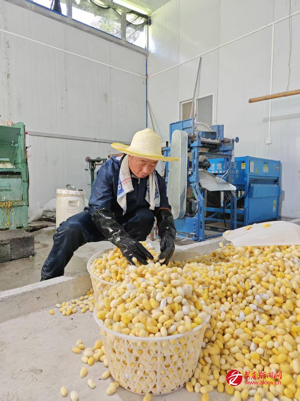 “以前養(yǎng)蠶全靠經(jīng)驗,溫濕度把控不好,蠶繭產(chǎn)量低?,F(xiàn)在有了智能設(shè)備和技術(shù)指導(dǎo),養(yǎng)蠶更輕松,收入也更高了?!崩罴液哟屦B(yǎng)蠶大戶王興義感慨道。作為產(chǎn)業(yè)帶頭人,他投資200余萬元成立家庭農(nóng)場,配套建設(shè)標(biāo)準(zhǔn)化養(yǎng)蠶室和加工廠房,引進(jìn)滑輪升降式省力化蠶臺、自動化養(yǎng)蠶設(shè)備,實現(xiàn)了從種養(yǎng)到加工的全鏈條升級。