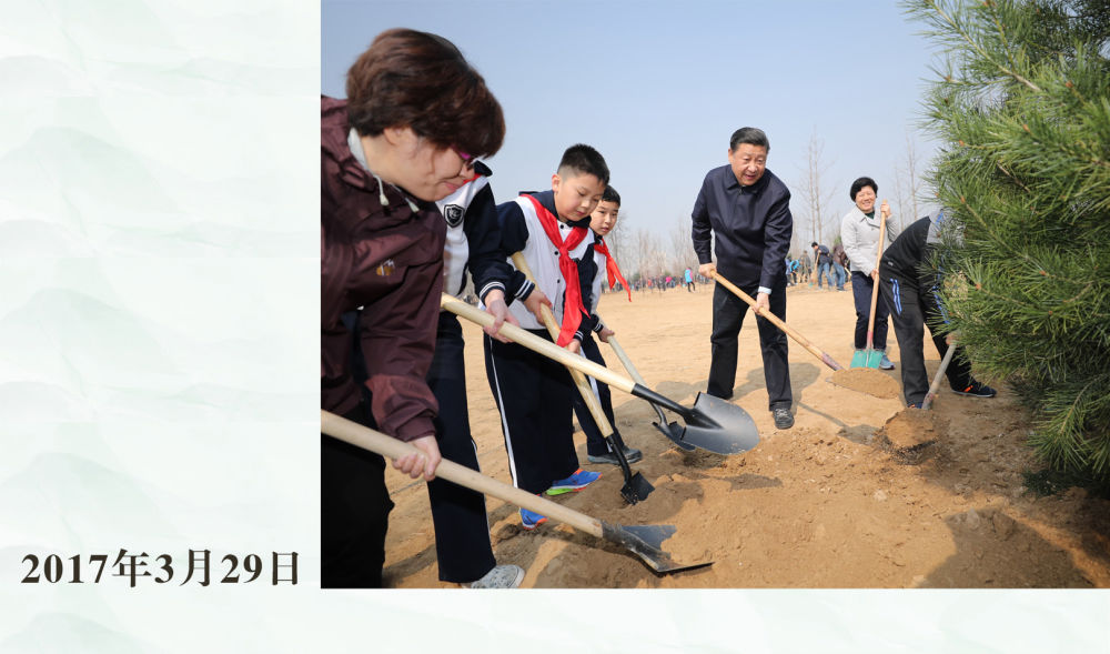 率先垂范、身體力行。此后13個春天,習(xí)近平總書記堅持同干部群眾一起參加義務(wù)植樹活動。永定河畔的濱水綠廊,城市副中心的綠心公園,產(chǎn)業(yè)疏解后改造的開放綠地,環(huán)境整治后打造的生態(tài)空間,都曾見證總書記躬身植綠的身影。