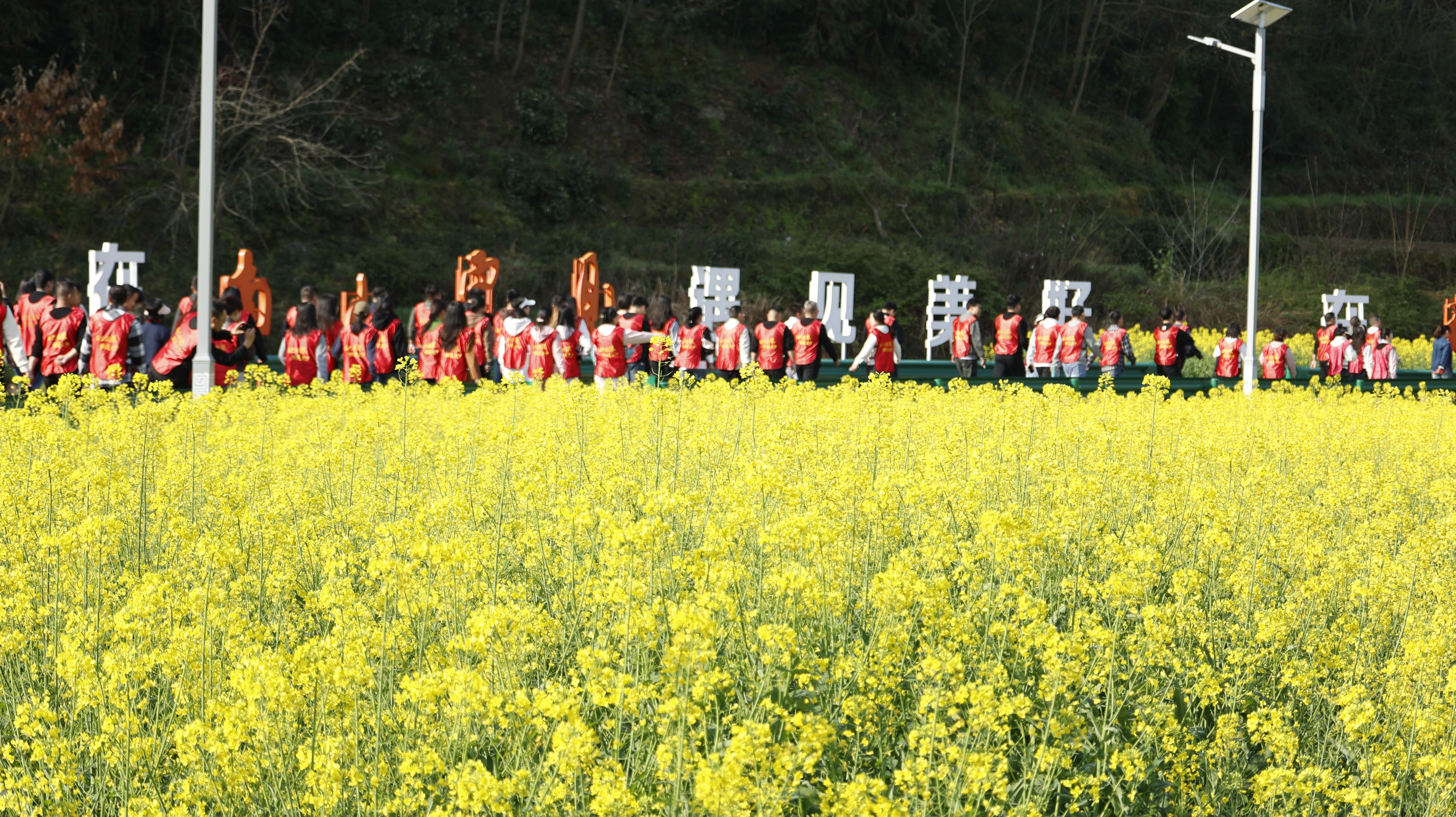 健步走結(jié)束后,啟動(dòng)儀式正式拉開(kāi)帷幕?,F(xiàn)場(chǎng)舉行了文旅推介,別出心裁地將安康民歌融入其中,悠揚(yáng)的歌聲在花海間回蕩。隨后的歌曲演唱、毛絨玩具互動(dòng)等環(huán)節(jié)輪番上演,整個(gè)活動(dòng)現(xiàn)場(chǎng)以油菜花海為天然背景,陽(yáng)光燦爛,春光明媚,歡聲笑語(yǔ)此起彼伏?;顒?dòng)最后,為健步走獲獎(jiǎng)職工舉行了頒獎(jiǎng)儀式。