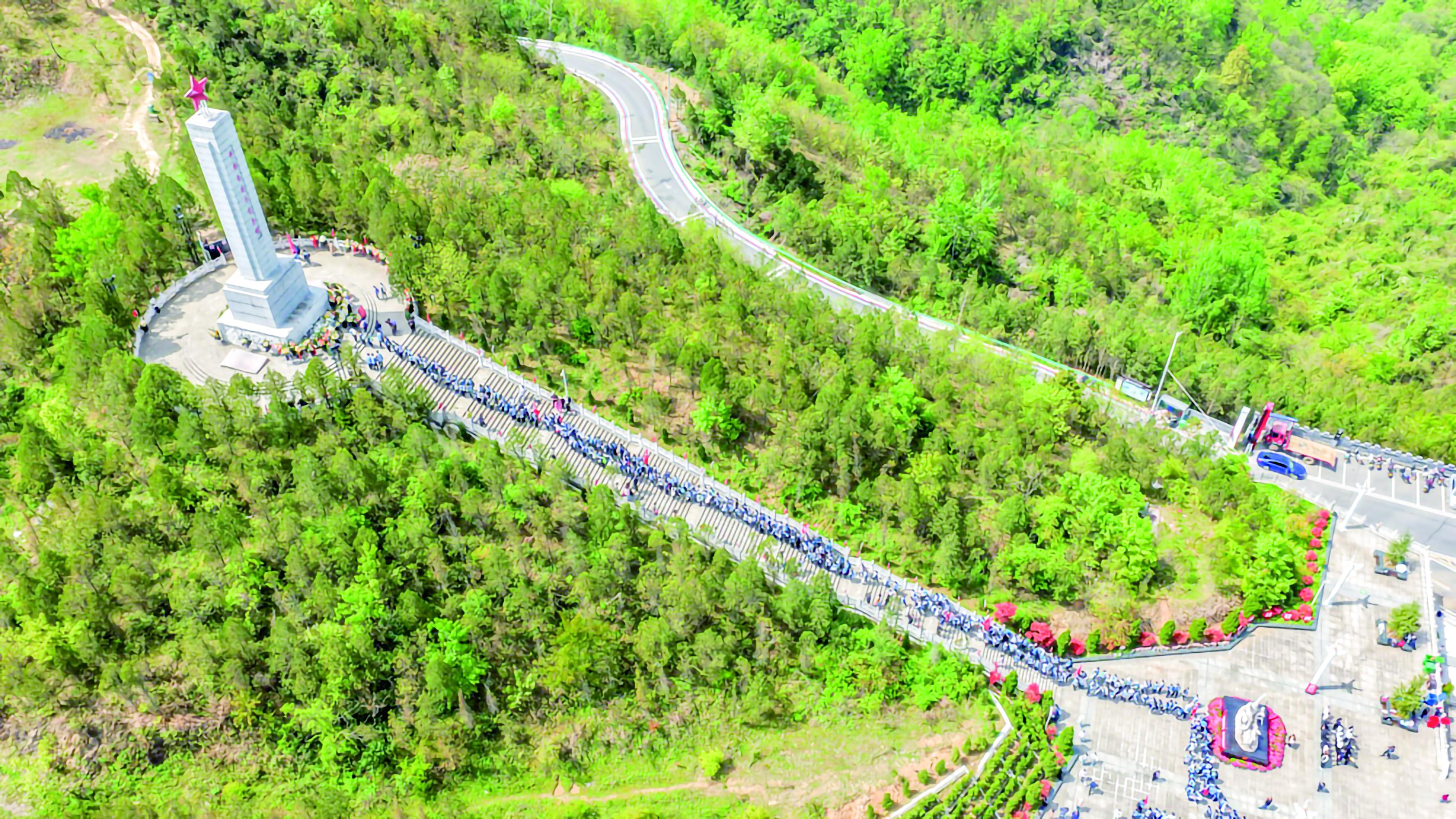 ▼ 4月3日,江北高級(jí)中學(xué)、安康中學(xué)初中部等5所學(xué)校的3000余名師生徒步赴牛蹄嶺開(kāi)展清明祭奠烈士活動(dòng)。 皮勇維 攝