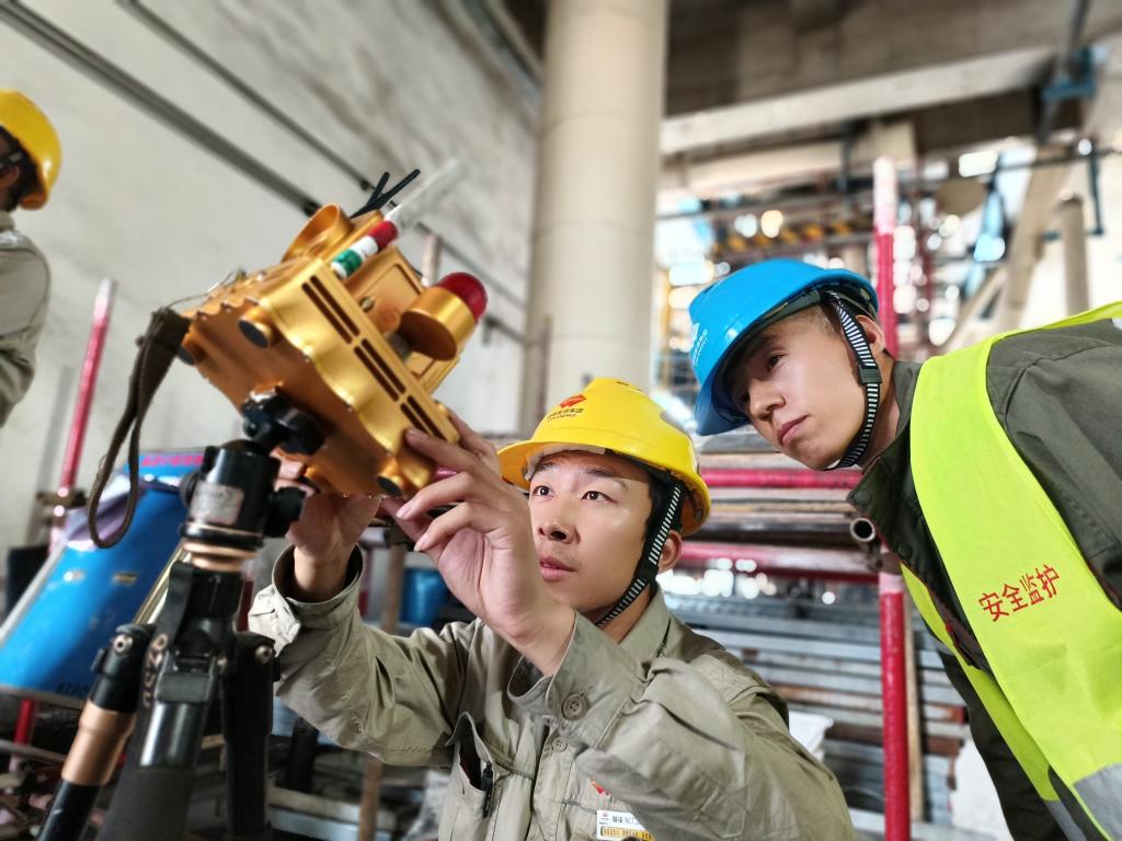 2024年4月23日,中國核電工程有限公司的企業(yè)導(dǎo)師和項目負(fù)責(zé)人現(xiàn)場指導(dǎo)朱澳(左一)。(李海萁 攝)