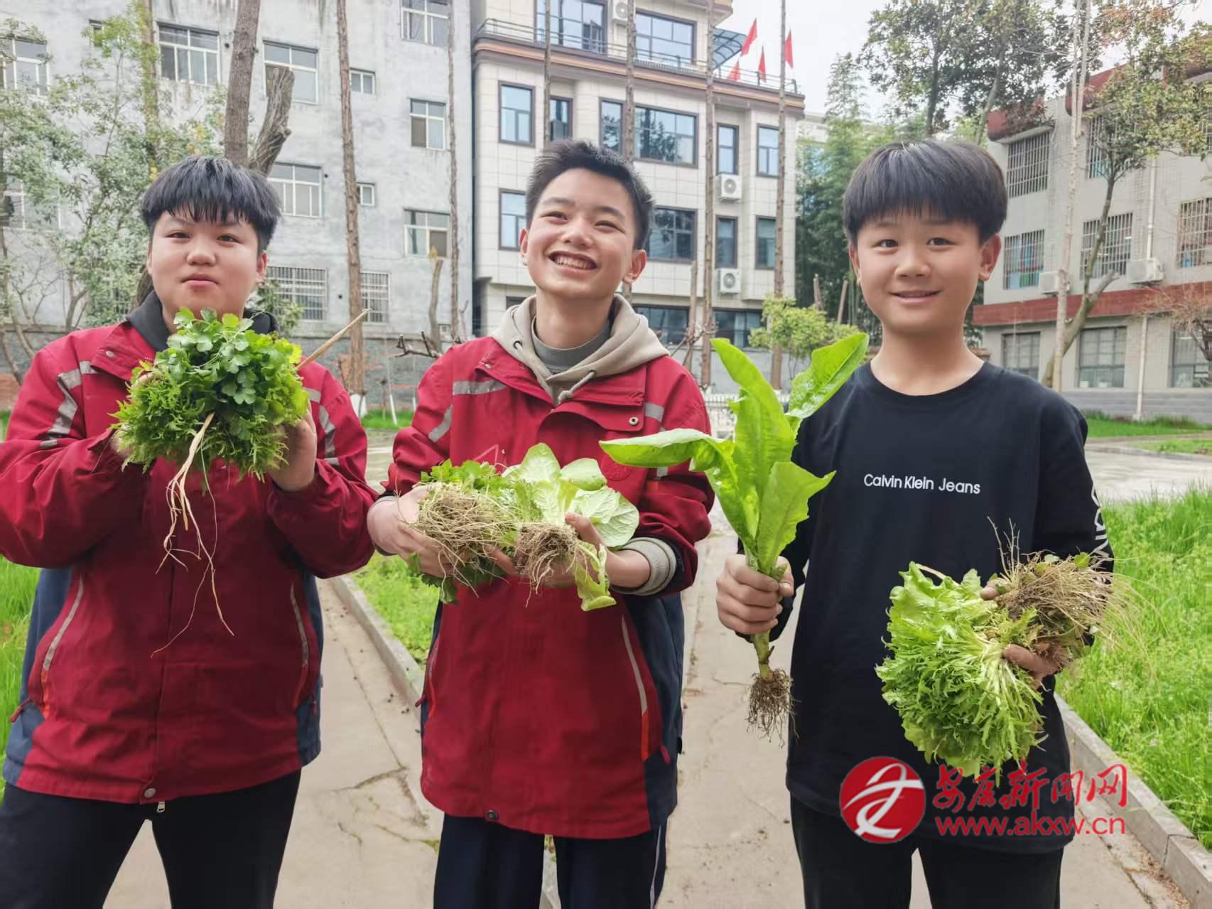 “看著自己翻過的土地,特別有成就感?!背跻粚W生陳榮耀一邊擦汗一邊說,“在春天種上菜,就等著收獲了?!?/p>