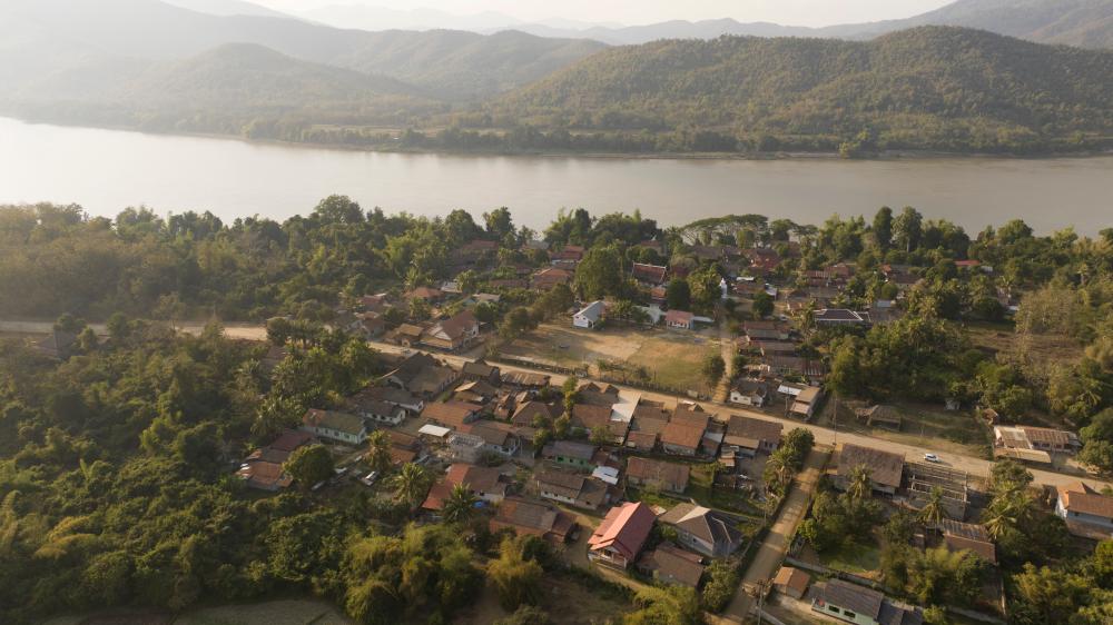 老撾瑯勃拉邦省瑯勃拉邦市聽(tīng)松村全貌(無(wú)人機(jī)照片)。新華社發(fā) 杜大鵬 攝