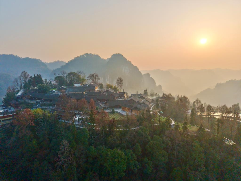 朝陽(yáng)在十八洞村升起。新華社記者 戴斌 攝