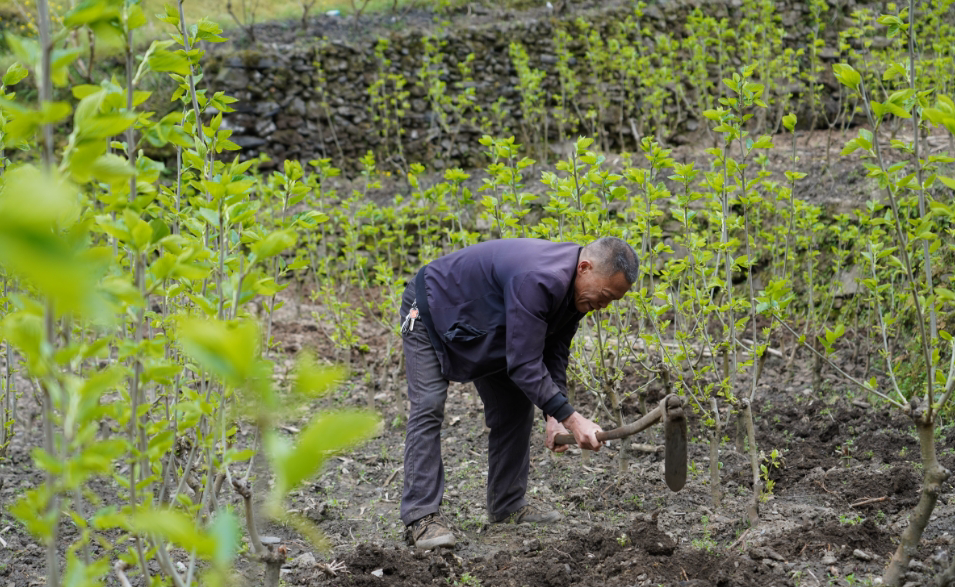 蠶農(nóng)在桑園內(nèi)精心管護(hù)桑樹(shù)