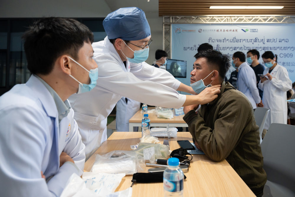 2月9日,復(fù)旦大學(xué)附屬眼耳鼻喉科醫(yī)院醫(yī)療團(tuán)隊(duì)在老撾萬(wàn)象瑪霍索綜合醫(yī)院義診。新華社發(fā)(凱喬攝)