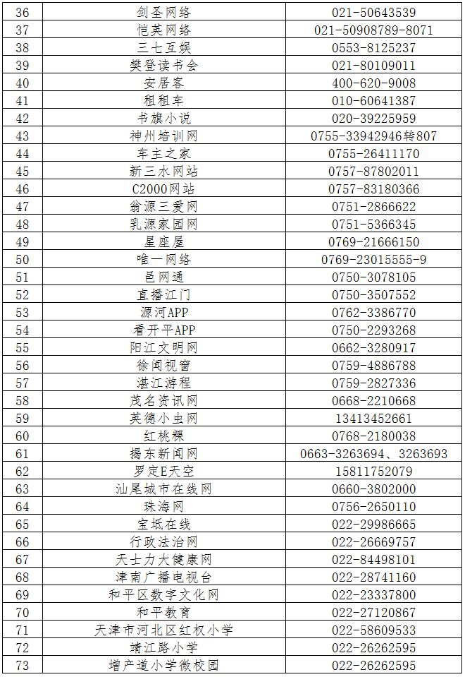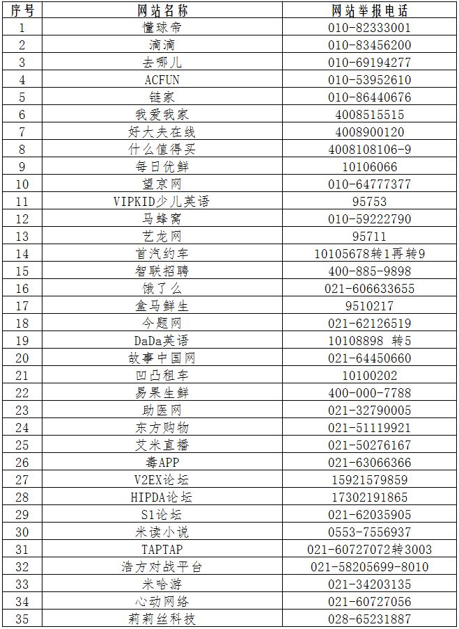 此次公布舉報(bào)受理方式的網(wǎng)站,既包括地方政府政務(wù)網(wǎng)站、地方新聞門戶網(wǎng)站、商業(yè)網(wǎng)站,又包括社區(qū)、論壇、微信公眾號(hào)等互動(dòng)平臺(tái),以及直播、游戲、APP應(yīng)用程序等互聯(lián)網(wǎng)應(yīng)用平臺(tái),內(nèi)容涉及生活服務(wù)、房屋租賃買賣、網(wǎng)約車、求職招聘、教育培訓(xùn)、旅游出行、小說(shuō)文學(xué)、醫(yī)療服務(wù)等多個(gè)方面。其中,滴滴出行、首汽約車、去哪兒、途牛旅游等網(wǎng)民使用率較高的出行、旅游類應(yīng)用平臺(tái),鏈家地產(chǎn)、我愛(ài)我家等房屋交易類應(yīng)用平臺(tái),盒馬鮮生、餓了么等生活服務(wù)類應(yīng)用平臺(tái)在公布名單之列。