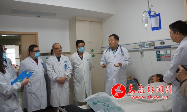 練學(xué)淦首先在鎮(zhèn)坪縣醫(yī)院內(nèi)科病區(qū),以2名腦梗塞患者為例進(jìn)行示范性教學(xué)查房,來(lái)到病房詳細(xì)聽(tīng)取了主管醫(yī)生的病例匯報(bào)。在凝神聽(tīng)取主管醫(yī)生的匯報(bào)后,練主任在患者床旁同患者及家屬交談,并親自進(jìn)行查體,了解疾病發(fā)展過(guò)程中的每個(gè)細(xì)節(jié),一絲不茍的從頭查起。