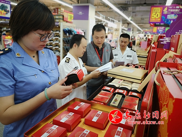 在各商超及月餅現(xiàn)場制售店,執(zhí)法人員嚴(yán)格檢查經(jīng)營戶是否證照齊全、月餅是否標(biāo)明廠名、生產(chǎn)日期、保質(zhì)期等數(shù)據(jù),是否存在以次充好、摻雜使假等情況。同時指導(dǎo)督促月餅經(jīng)營者健全進(jìn)銷貨臺賬、索證索票制度,從源頭上把好月餅質(zhì)量關(guān)。