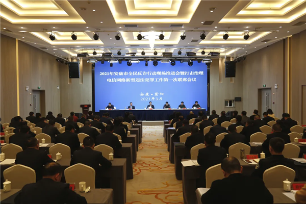 春風(fēng)吹奮進,反詐正當(dāng)時,3月9日,中共安康市委、安康市人民政府在紫陽縣召開2021年安康市全民反詐行動現(xiàn)場推進會暨打擊治理電信網(wǎng)絡(luò)新型違法犯罪工作第一次聯(lián)席會議,認真學(xué)習(xí)貫徹習(xí)近平總書記關(guān)于打擊治理電信網(wǎng)絡(luò)新型違法犯罪工作重要指示精神,全面落實中省部署新要求,推動構(gòu)建“黨政主導(dǎo)、部門主責(zé)、公安主打、群眾主體”四位一體全社會反詐新格局,以“兩降四無”(發(fā)案數(shù)下降、群眾損失下降,無電信網(wǎng)絡(luò)詐騙案件、無詐騙犯罪嫌疑人、無“兩卡”涉案人員、無詐騙窩點)為創(chuàng)建標準,在全省率先從全市層面全面鋪開“無詐村(社區(qū))、單位、鎮(zhèn)(辦)”創(chuàng)建活動暨全民反詐行動,把打贏反詐人民戰(zhàn)爭作為政法隊伍教育整頓為群眾辦好的一件實事,進一步助力市域社會治理現(xiàn)代化和更高水平平安安康建設(shè),推動安康政法工作高質(zhì)量發(fā)展。