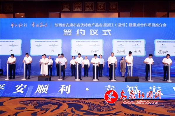 本網(wǎng)訊(記者 吳單)7月16日,市政府聯(lián)合省工信廳、商務(wù)廳共同主辦的“平安順利·幸福安康——陜西省安康市名優(yōu)特色產(chǎn)品走進(jìn)浙江(溫州)暨重點(diǎn)合作項(xiàng)目推介會(huì)”在溫州成功舉行。代市長(zhǎng)武文罡、省工信廳副廳長(zhǎng)劉波出席活動(dòng)并致辭,市委常委、宣傳部部長(zhǎng)羅雪劍,副市長(zhǎng)寇全安,市政協(xié)副主席孟平,安康市開放發(fā)展高級(jí)顧問楊堯成等參加活動(dòng)。