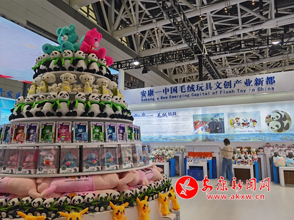 今年五月,第五屆絲綢之路國際博覽會(huì)暨中國東西部合作與投資貿(mào)易洽談會(huì)在西安舉行。走進(jìn)安康展館,毛絨玩具搭建的小山格外顯眼,十四運(yùn)吉祥物“秦嶺四寶”占據(jù)C位,展廳四周也用毛絨玩具娃娃進(jìn)行點(diǎn)綴。前來拍照、采購、咨詢的市民絡(luò)繹不絕。不少企業(yè)現(xiàn)場(chǎng)接到訂單。
